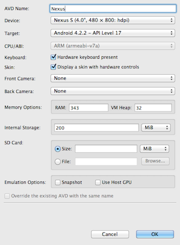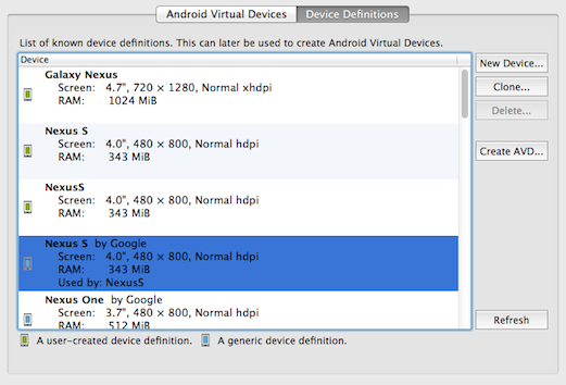 To open the emulator as a separate application, select the AVD and press Start. It launches much as it would on the device, with additional controls available for hardware buttons: