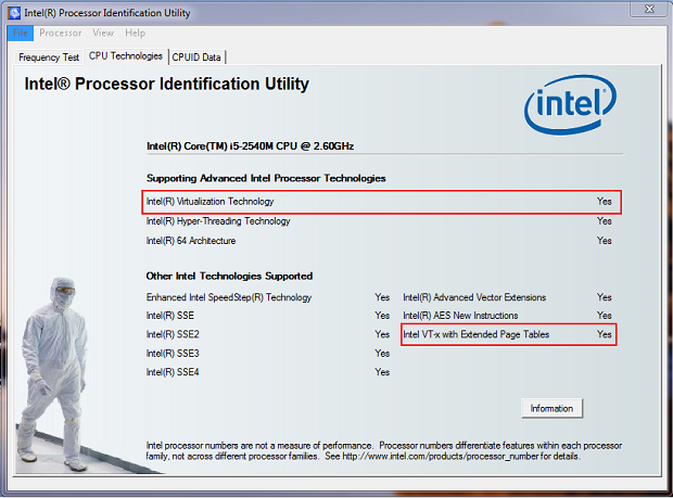 - Intel Virtualization Technology (VT-x, vmx) → Intel VT-x supported processor list